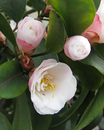 主要形態(tài)特征:花粉白色,花瓣基部具深粉紅色條紋,單瓣,小花型,平均花徑2.79cm,花瓣5枚。多枚花蕾頂生或腋生,開花極其繁密。花期2月下旬-4月,長達40天左右。嫩葉紫紅色,成熟葉片濃綠色...